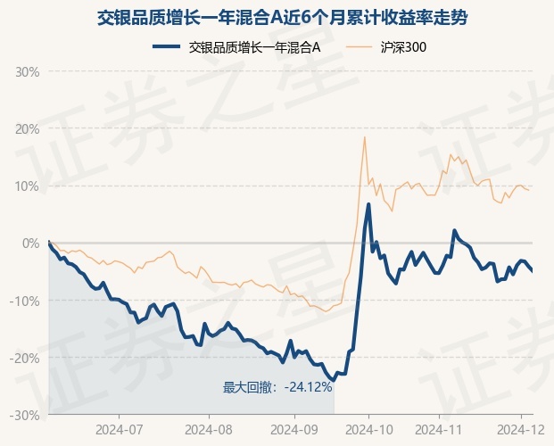 证券之星消息,12月5日,交银品质增长一年混合A最新单位净值为0.6963元,累计净值为0.6963元,较前一交易日下跌0.76%。历史数据显示该基金近1个月下跌2.7%,近3个月上涨17.34%,近6个月下跌4.94%,近1年下跌15.88%。该基金近6个月的累计收益率走势如下图: