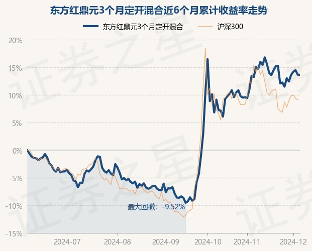 证券之星消息,12月5日,东方红鼎元3个月定开混合最新单位净值为0.955元,累计净值为0.955元,较前一交易日上涨0.0%。历史数据显示该基金近1个月上涨0.26%,近3个月上涨21.89%,近6个月上涨13.76%,近1年上涨16.46%。该基金近6个月的累计收益率走势如下图: