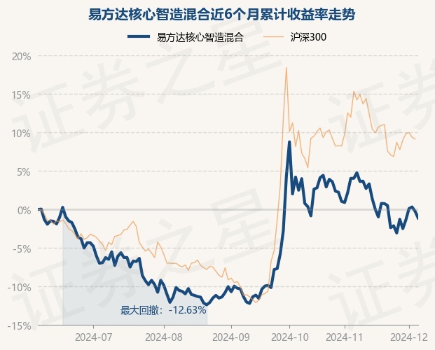 证券之星消息,12月5日,易方达核心智造混合最新单位净值为0.8619元,累计净值为0.8619元,较前一交易日下跌0.89%。历史数据显示该基金近1个月下跌4.95%,近3个月上涨10.26%,近6个月下跌1.11%,近1年上涨17.3%。该基金近6个月的累计收益率走势如下图: