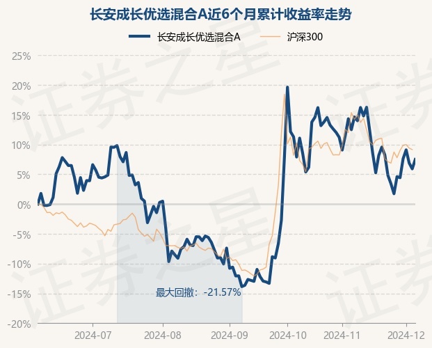 证券之星消息,12月5日,长安成长优选混合A最新单位净值为0.5349元,累计净值为0.5349元,较前一交易日上涨1.5%。历史数据显示该基金近1个月下跌5.98%,近3个月上涨22.23%,近6个月上涨7.5%,近1年上涨9.12%。该基金近6个月的累计收益率走势如下图: