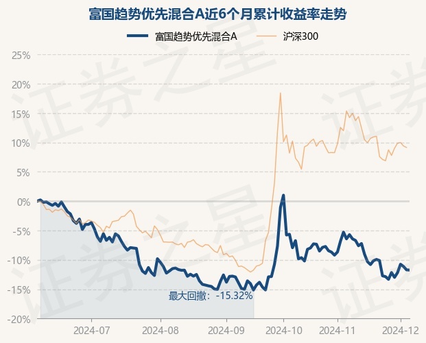 证券之星消息,12月5日,富国趋势优先混合A最新单位净值为0.7354元,累计净值为0.7354元,较前一交易日下跌0.04%。历史数据显示该基金近1个月下跌6.83%,近3个月上涨1.35%,近6个月下跌11.75%,近1年下跌6.96%。该基金近6个月的累计收益率走势如下图: