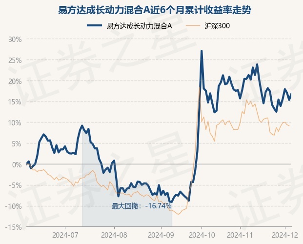 证券之星消息,12月5日,易方达成长动力混合A最新单位净值为1.0926元,累计净值为1.0926元,较前一交易日上涨1.21%。历史数据显示该基金近1个月下跌3.02%,近3个月上涨25.38%,近6个月上涨16.73%,近1年上涨27.45%。该基金近6个月的累计收益率走势如下图: