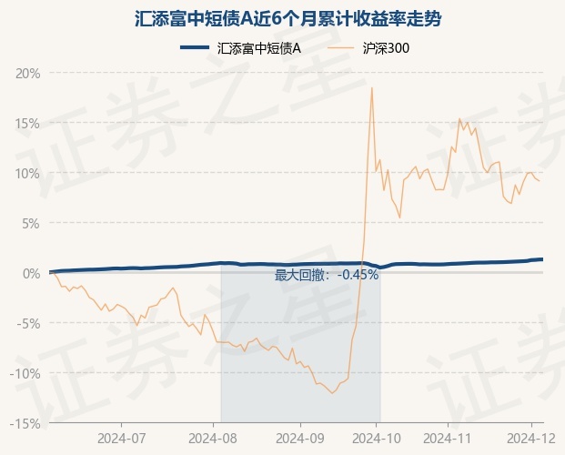 证券之星消息,12月5日,汇添富中短债A最新单位净值为1.0866元,累计净值为1.1445元,较前一交易日上涨0.01%。历史数据显示该基金近1个月上涨0.43%,近3个月上涨0.44%,近6个月上涨1.29%,近1年上涨4.24%。该基金近6个月的累计收益率走势如下图: