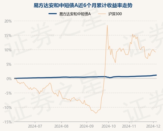 证券之星消息,12月5日,易方达安和中短债A最新单位净值为1.0734元,累计净值为1.1234元,较前一交易日上涨0.02%。历史数据显示该基金近1个月上涨0.47%,近3个月上涨0.64%,近6个月上涨1.14%,近1年上涨3.11%。该基金近6个月的累计收益率走势如下图: