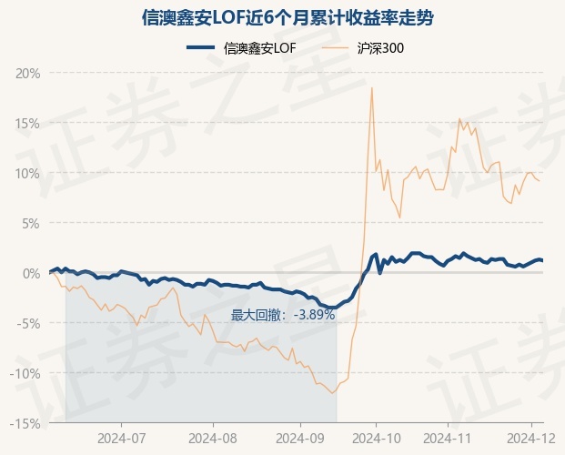证券之星消息,12月5日,信澳鑫安LOF最新单位净值为1.012元,累计净值为1.39元,较前一交易日下跌0.1%。历史数据显示该基金近1个月下跌0.44%,近3个月上涨3.74%,近6个月上涨1.17%,近1年上涨5.8%。该基金近6个月的累计收益率走势如下图: