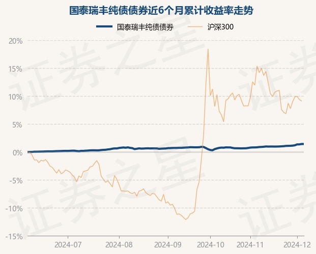 证券之星消息,12月5日,国泰瑞丰纯债债券最新单位净值为1.0102元,累计净值为1.0822元,较前一交易日上涨0.0%。历史数据显示该基金近1个月上涨0.61%,近3个月上涨0.7%,近6个月上涨1.44%,近1年上涨3.58%。该基金近6个月的累计收益率走势如下图: