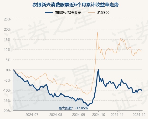 证券之星消息,12月5日,农银新兴消费股票最新单位净值为0.553元,累计净值为0.553元,较前一交易日下跌0.65%。历史数据显示该基金近1个月下跌3.62%,近3个月上涨4.54%,近6个月下跌10.45%,近1年下跌5.65%。该基金近6个月的累计收益率走势如下图: