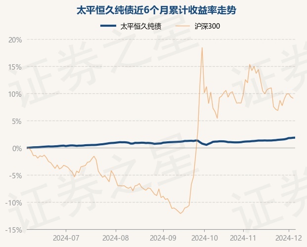 证券之星消息,12月5日,太平恒久纯债最新单位净值为1.0316元,累计净值为1.4186元,较前一交易日上涨0.02%。历史数据显示该基金近1个月上涨0.69%,近3个月上涨0.83%,近6个月上涨1.88%,近1年上涨5.55%。该基金近6个月的累计收益率走势如下图: