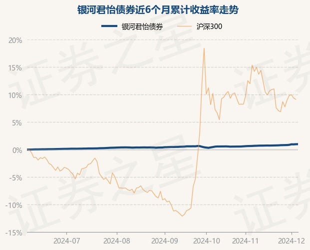 证券之星消息,12月5日,银河君怡债券最新单位净值为1.0736元,累计净值为1.256元,较前一交易日上涨0.01%。历史数据显示该基金近1个月上涨0.34%,近3个月上涨0.51%,近6个月上涨1.0%,近1年上涨2.36%。该基金近6个月的累计收益率走势如下图: