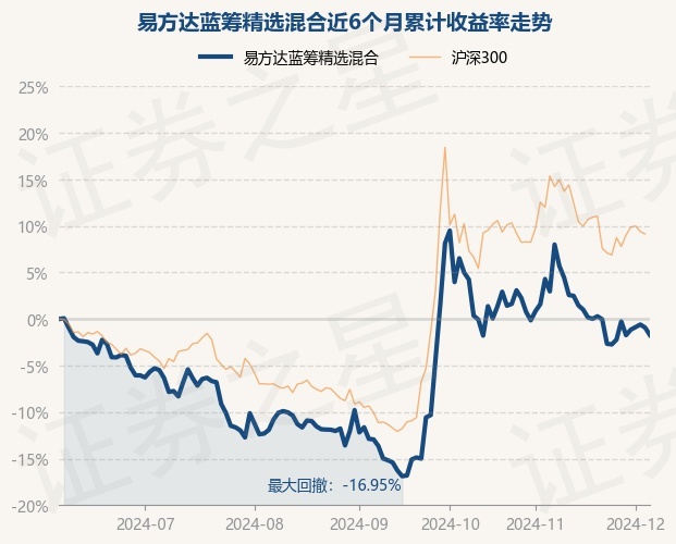 证券之星消息,12月5日,易方达蓝筹精选混合最新单位净值为1.7561元,累计净值为1.7561元,较前一交易日下跌0.81%。历史数据显示该基金近1个月下跌5.77%,近3个月上涨12.88%,近6个月下跌1.72%,近1年上涨1.5%。该基金近6个月的累计收益率走势如下图: