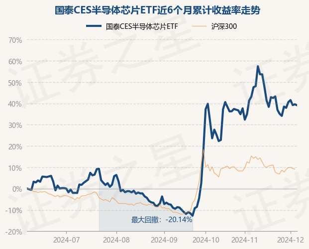 证券之星消息,12月5日,国泰CES半导体芯片ETF最新单位净值为1.1095元,累计净值为2.219元,较前一交易日下跌0.32%。历史数据显示该基金近1个月下跌1.57%,近3个月上涨50.44%,近6个月上涨39.14%,近1年上涨21.8%。该基金近6个月的累计收益率走势如下图: