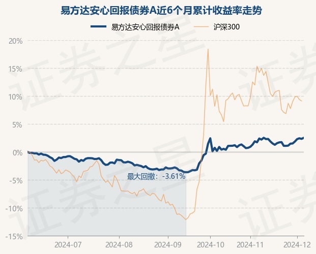 证券之星消息,12月5日,易方达安心回报债券A最新单位净值为1.9839元,累计净值为3.0829元,较前一交易日上涨0.18%。历史数据显示该基金近1个月上涨0.61%,近3个月上涨5.45%,近6个月上涨2.54%,近1年上涨7.81%。该基金近6个月的累计收益率走势如下图: