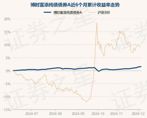 证券之星消息,12月5日,博时富添纯债债券A最新单位净值为1.1009元,累计净值为1.1666元,较前一交易日上涨0.02%。历史数据显示该基金近1个月上涨1.07%,近3个月上涨0.68%,近6个月上涨1.57%,近1年上涨4.91%。该基金近6个月的累计收益率走势如下图: