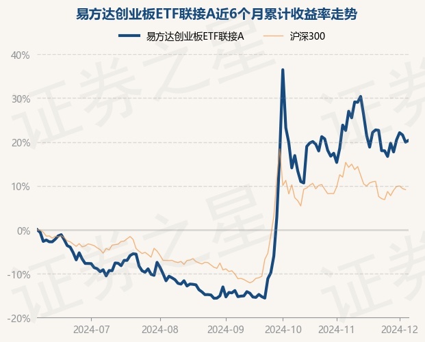 证券之星消息,12月5日,易方达创业板ETF联接A最新单位净值为2.2746元,累计净值为2.2746元,较前一交易日上涨0.34%。历史数据显示该基金近1个月下跌2.8%,近3个月上涨39.72%,近6个月上涨20.38%,近1年上涨17.95%。该基金近6个月的累计收益率走势如下图: