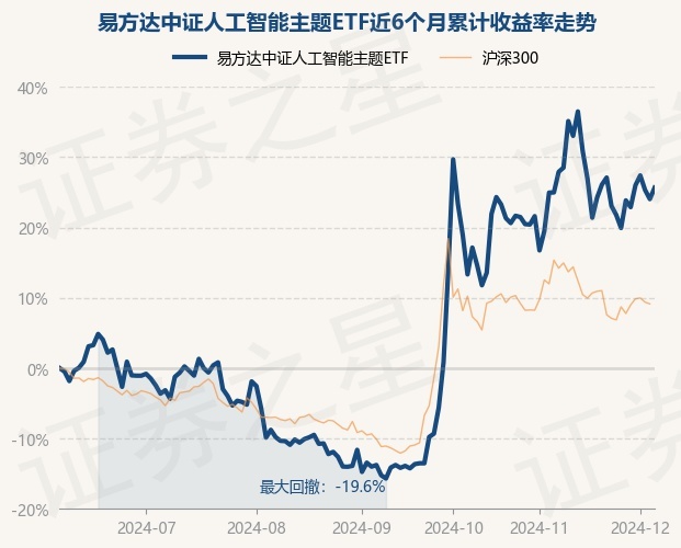 证券之星消息,12月5日,易方达中证人工智能主题ETF最新单位净值为0.9092元,累计净值为0.9092元,较前一交易日上涨1.3%。历史数据显示该基金近1个月上涨0.56%,近3个月上涨45.73%,近6个月上涨25.67%,近1年上涨21.84%。该基金近6个月的累计收益率走势如下图: