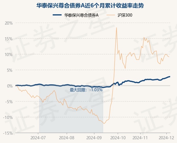 证券之星消息,12月5日,华泰保兴尊合债券A最新单位净值为1.2132元,累计净值为1.4398元,较前一交易日上涨0.06%。历史数据显示该基金近1个月上涨1.23%,近3个月上涨3.28%,近6个月上涨2.86%,近1年上涨7.49%。该基金近6个月的累计收益率走势如下图: