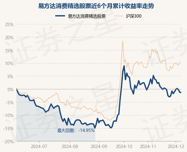证券之星消息,12月6日,易方达消费精选股票最新单位净值为0.8271元,累计净值为0.8271元,较前一交易日上涨0.0%。历史数据显示该基金近1个月下跌1.86%,近3个月上涨14.62%,近6个月上涨0.13%,近1年上涨6.63%。该基金近6个月的累计收益率走势如下图: