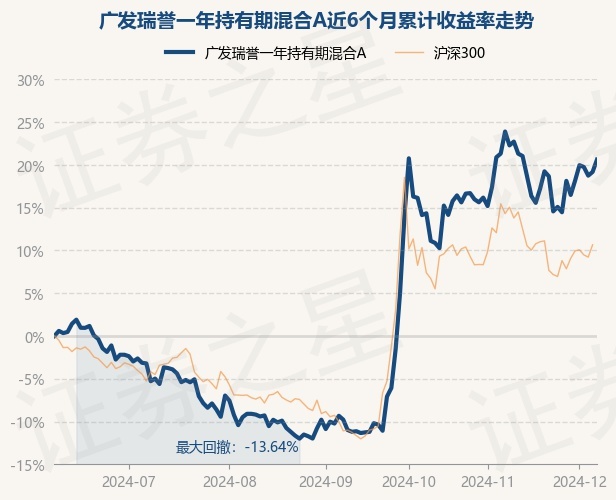 证券之星消息,12月6日,广发瑞誉一年持有期混合A最新单位净值为1.0852元,累计净值为1.0852元,较前一交易日上涨1.2%。历史数据显示该基金近1个月下跌0.59%,近3个月上涨33.68%,近6个月上涨20.6%,近1年上涨20.06%。该基金近6个月的累计收益率走势如下图: