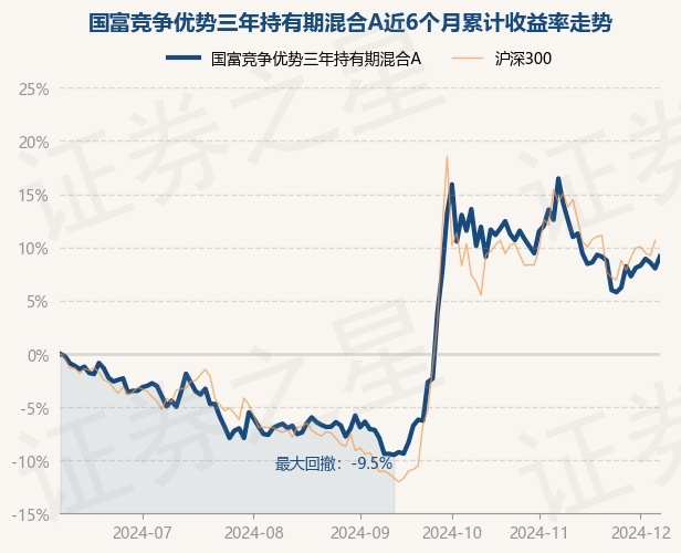 证券之星消息,12月6日,国富竞争优势三年持有期混合A最新单位净值为1.0172元,累计净值为1.0172元,较前一交易日上涨1.03%。历史数据显示该基金近1个月下跌3.06%,近3个月上涨18.54%,近6个月上涨9.14%,近1年上涨25.52%。该基金近6个月的累计收益率走势如下图: