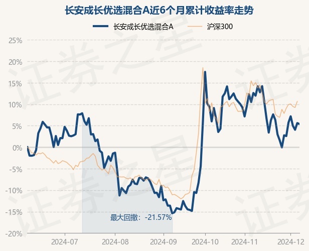 证券之星消息,12月6日,长安成长优选混合A最新单位净值为0.5338元,累计净值为0.5338元,较前一交易日下跌0.21%。历史数据显示该基金近1个月下跌4.63%,近3个月上涨24.55%,近6个月上涨5.39%,近1年上涨8.3%。该基金近6个月的累计收益率走势如下图: