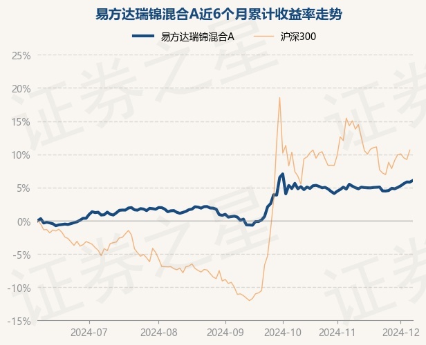 证券之星消息,12月6日,易方达瑞锦混合A最新单位净值为1.2604元,累计净值为1.3004元,较前一交易日上涨0.23%。历史数据显示该基金近1个月上涨1.23%,近3个月上涨5.48%,近6个月上涨6.06%,近1年上涨13.37%。该基金近6个月的累计收益率走势如下图: