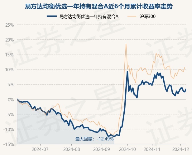 证券之星消息,12月6日,易方达均衡优选一年持有混合A最新单位净值为1.0538元,累计净值为1.0538元,较前一交易日上涨0.86%。历史数据显示该基金近1个月下跌3.43%,近3个月上涨16.97%,近6个月上涨3.33%,近1年上涨4.17%。该基金近6个月的累计收益率走势如下图: