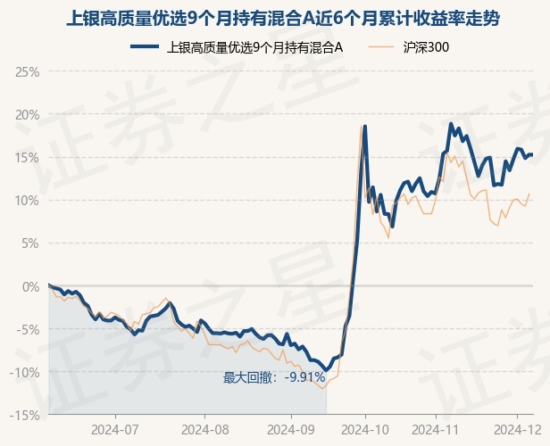证券之星消息,12月6日,上银高质量优选9个月持有混合A最新单位净值为0.6918元,累计净值为0.6918元,较前一交易日上涨0.0%。历史数据显示该基金近1个月上涨0.92%,近3个月上涨26.54%,近6个月上涨16.74%,近1年上涨19.81%。该基金近6个月的累计收益率走势如下图: