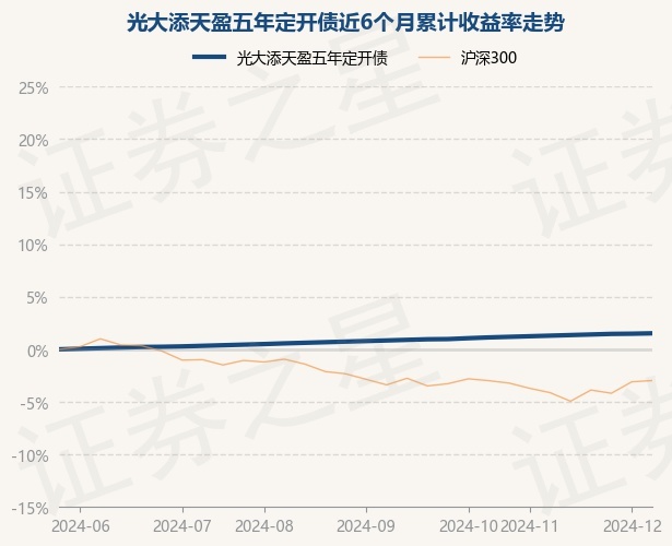 证券之星消息,12月6日,光大添天盈五年定开债最新单位净值为1.0817元,累计净值为1.1427元,较前一交易日上涨0.04%。历史数据显示该基金近1个月上涨0.28%,近3个月上涨0.73%,近6个月上涨1.52%,近1年上涨2.97%。该基金近6个月的累计收益率走势如下图: