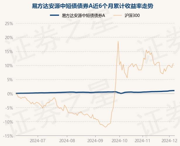 证券之星消息,12月6日,易方达安源中短债债券A最新单位净值为1.0288元,累计净值为1.1733元,较前一交易日上涨0.01%。历史数据显示该基金近1个月上涨0.49%,近3个月上涨0.55%,近6个月上涨1.01%,近1年上涨3.03%。该基金近6个月的累计收益率走势如下图: