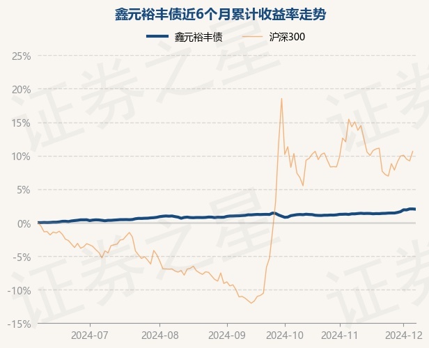 证券之星消息,12月6日,鑫元裕丰债最新单位净值为1.0864元,累计净值为1.0964元,较前一交易日下跌0.04%。历史数据显示该基金近1个月上涨0.77%,近3个月上涨0.98%,近6个月上涨2.01%,近1年上涨5.96%。该基金近6个月的累计收益率走势如下图: