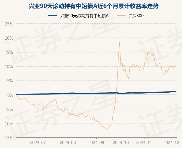 兴业90天滚动持有中短债A为债券型-中短债基金,根据最新一期基金季报显示,该基金资产配置:无股票类资产,债券占净值比111.37%,现金占净值比0.95%。