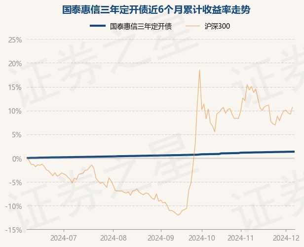 证券之星消息,12月6日,国泰惠信三年定开债最新单位净值为1.009元,累计净值为1.1379元,较前一交易日上涨0.01%。历史数据显示该基金近1个月上涨0.19%,近3个月上涨0.77%,近6个月上涨1.85%,近1年上涨2.44%。该基金近6个月的累计收益率走势如下图: