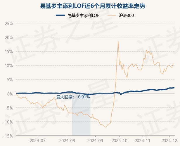 证券之星消息,12月6日,易基岁丰添利LOF最新单位净值为1.6806元,累计净值为2.5916元,较前一交易日上涨0.06%。历史数据显示该基金近1个月上涨0.93%,近3个月上涨2.03%,近6个月上涨2.03%,近1年上涨6.01%。该基金近6个月的累计收益率走势如下图: