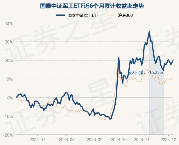 证券之星消息,12月6日,国泰中证军工ETF最新单位净值为1.0775元,累计净值为1.0775元,较前一交易日上涨0.86%。历史数据显示该基金近1个月下跌7.14%,近3个月上涨32.47%,近6个月上涨20.07%,近1年上涨11.76%。该基金近6个月的累计收益率走势如下图: