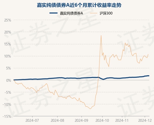 证券之星消息,12月6日,嘉实纯债债券A最新单位净值为1.3529元,累计净值为1.5405元,较前一交易日上涨0.01%。历史数据显示该基金近1个月上涨0.88%,近3个月上涨0.85%,近6个月上涨1.75%,近1年上涨4.59%。该基金近6个月的累计收益率走势如下图: