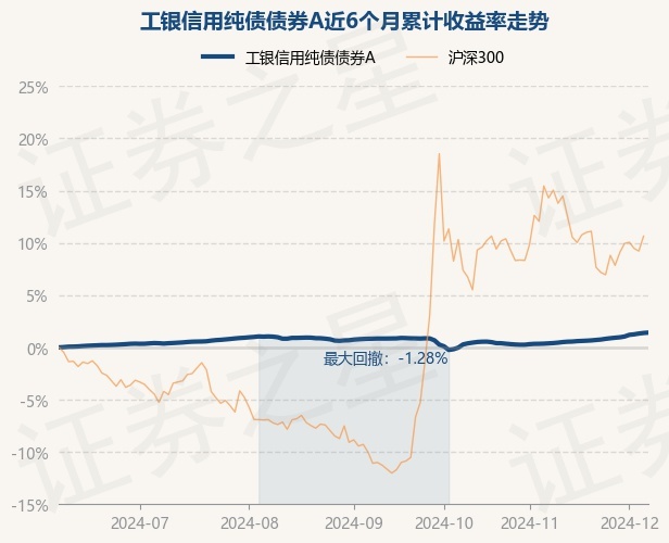 证券之星消息,12月6日,工银信用纯债债券A最新单位净值为1.4677元,累计净值为1.5087元,较前一交易日上涨0.03%。历史数据显示该基金近1个月上涨1.05%,近3个月上涨0.58%,近6个月上涨1.42%,近1年上涨4.96%。该基金近6个月的累计收益率走势如下图: