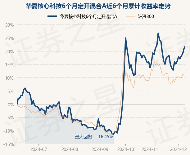 证券之星消息,12月9日,华夏核心科技6个月定开混合A最新单位净值为0.8162元,累计净值为0.8162元,较前一交易日上涨0.96%。历史数据显示该基金近1个月上涨0.02%,近3个月上涨36.08%,近6个月上涨22.04%,近1年下跌2.87%。该基金近6个月的累计收益率走势如下图: