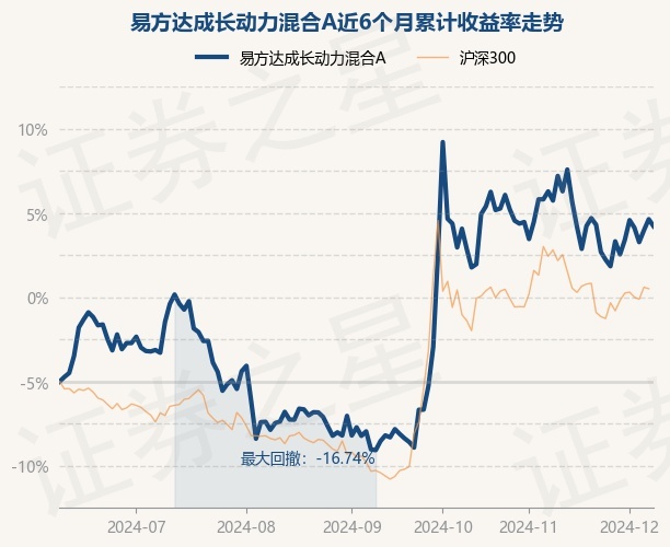 证券之星消息,12月9日,易方达成长动力混合A最新单位净值为1.097元,累计净值为1.097元,较前一交易日下跌0.7%。历史数据显示该基金近1个月下跌2.51%,近3个月上涨28.94%,近6个月上涨18.44%,近1年上涨23.86%。该基金近6个月的累计收益率走势如下图: