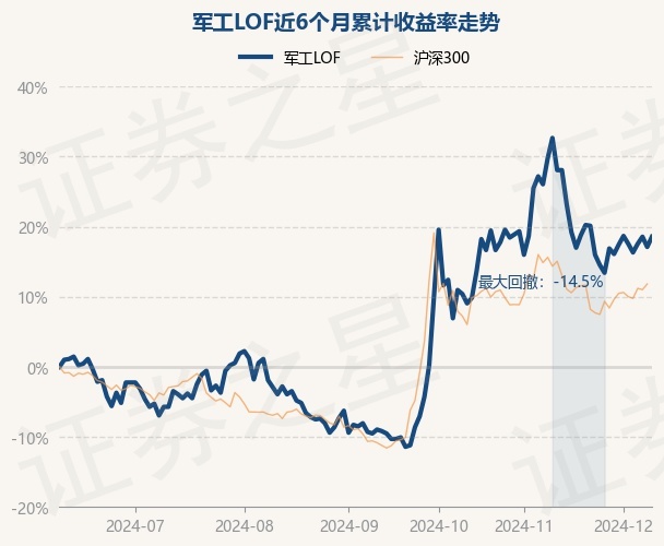 证券之星消息,12月9日,军工LOF最新单位净值为1.047元,累计净值为1.732元,较前一交易日下跌1.23%。历史数据显示该基金近1个月下跌9.74%,近3个月上涨29.42%,近6个月上涨17.11%,近1年上涨11.74%。该基金近6个月的累计收益率走势如下图: