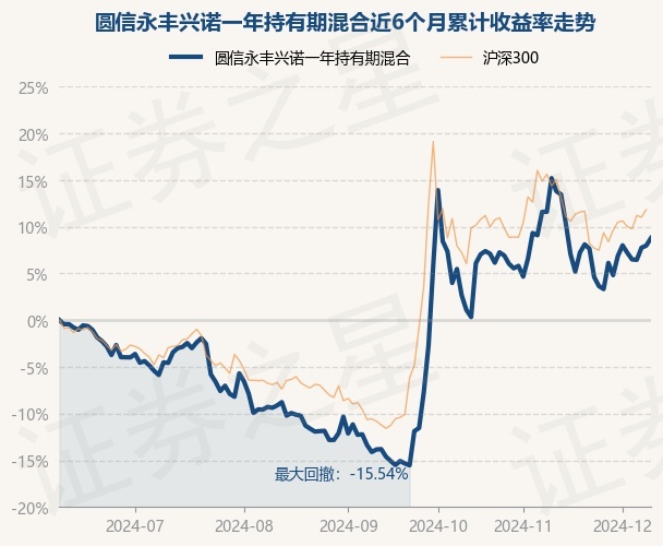 证券之星消息,12月9日,圆信永丰兴诺一年持有期混合最新单位净值为0.9151元,累计净值为0.9151元,较前一交易日上涨0.0%。历史数据显示该基金近1个月下跌3.25%,近3个月上涨25.72%,近6个月上涨7.98%,近1年上涨5.8%。该基金近6个月的累计收益率走势如下图: