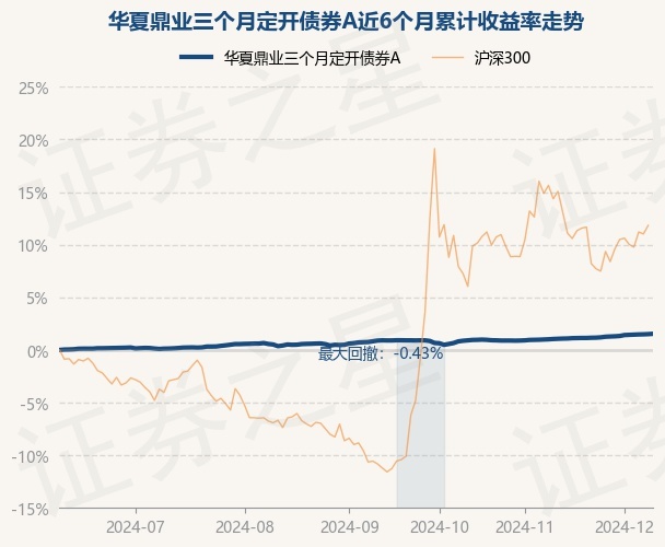 证券之星消息,12月9日,华夏鼎业三个月定开债券A最新单位净值为1.0308元,累计净值为1.0933元,较前一交易日上涨0.0%。历史数据显示该基金近1个月上涨0.49%,近3个月上涨0.67%,近6个月上涨1.5%,近1年上涨3.76%。该基金近6个月的累计收益率走势如下图: