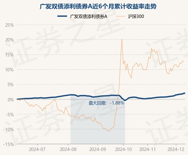 证券之星消息,12月11日,广发双债添利债券A最新单位净值为1.2333元,累计净值为1.6562元,较前一交易日上涨0.01%。历史数据显示该基金近1个月上涨1.46%,近3个月上涨0.84%,近6个月上涨1.99%,近1年上涨6.46%。该基金近6个月的累计收益率走势如下图: