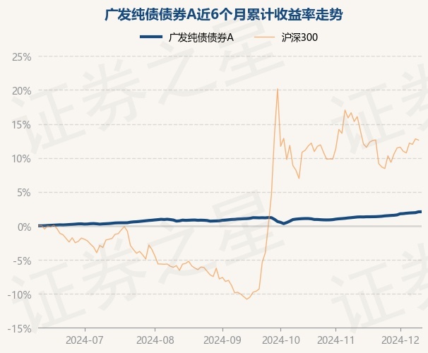 证券之星消息,12月11日,广发纯债债券A最新单位净值为1.2579元,累计净值为1.6956元,较前一交易日上涨0.01%。历史数据显示该基金近1个月上涨1.58%,近3个月上涨1.78%,近6个月上涨2.85%,近1年上涨6.54%。该基金近6个月的累计收益率走势如下图: