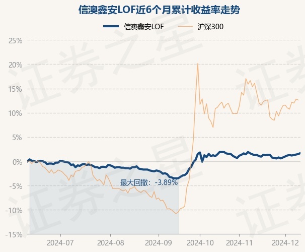 证券之星消息,12月11日,信澳鑫安LOF最新单位净值为1.017元,累计净值为1.395元,较前一交易日上涨0.2%。历史数据显示该基金近1个月上涨0.24%,近3个月上涨5.38%,近6个月上涨1.67%,近1年上涨6.32%。该基金近6个月的累计收益率走势如下图: