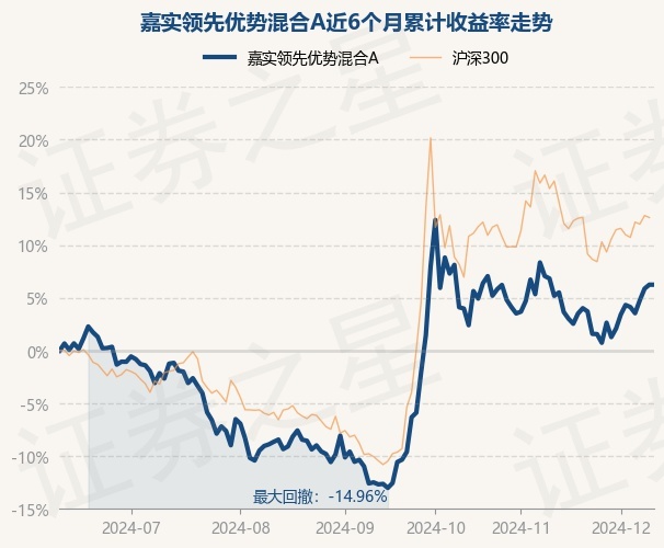证券之星消息,12月11日,嘉实领先优势混合A最新单位净值为0.9464元,累计净值为0.9464元,较前一交易日上涨0.0%。历史数据显示该基金近1个月下跌0.25%,近3个月上涨22.04%,近6个月上涨6.56%,近1年上涨19.42%。该基金近6个月的累计收益率走势如下图: