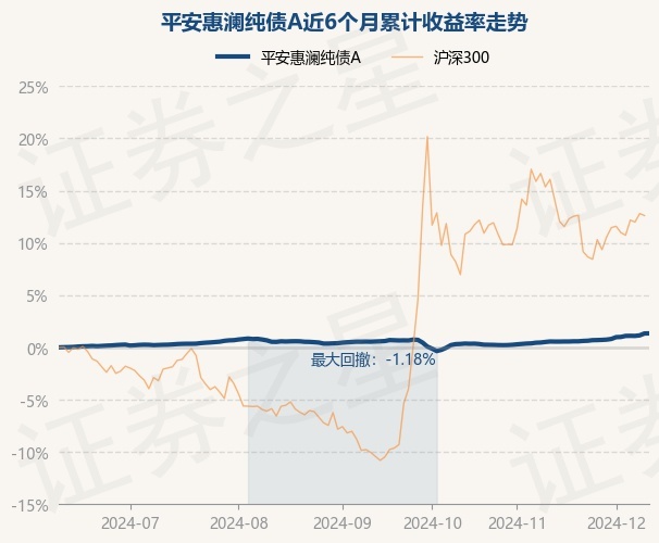 证券之星消息,12月11日,平安惠澜纯债A最新单位净值为1.12元,累计净值为1.205元,较前一交易日上涨0.01%。历史数据显示该基金近1个月上涨0.82%,近3个月上涨0.77%,近6个月上涨1.34%,近1年上涨4.62%。该基金近6个月的累计收益率走势如下图:
