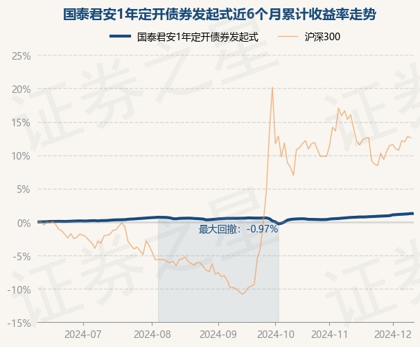 证券之星消息,12月11日,国泰君安1年定开债券发起式最新单位净值为1.0316元,累计净值为1.121元,较前一交易日上涨0.0%。历史数据显示该基金近1个月上涨0.62%,近3个月上涨0.71%,近6个月上涨1.28%,近1年上涨4.82%。该基金近6个月的累计收益率走势如下图: