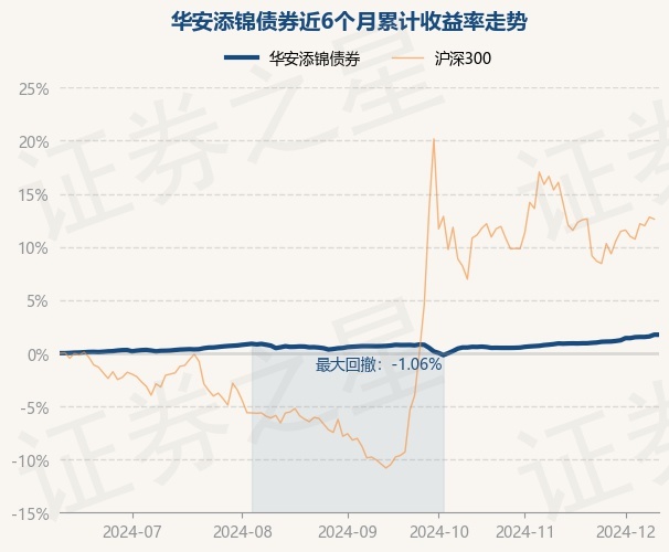 证券之星消息,12月11日,华安添锦债券最新单位净值为1.0505元,累计净值为1.0685元,较前一交易日上涨0.0%。历史数据显示该基金近1个月上涨0.88%,近3个月上涨1.07%,近6个月上涨1.74%,近1年上涨4.6%。该基金近6个月的累计收益率走势如下图: