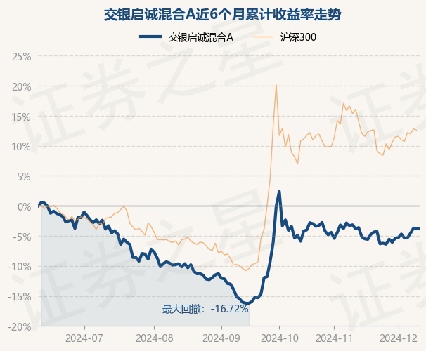 证券之星消息,12月11日,交银启诚混合A最新单位净值为1.109元,累计净值为1.109元,较前一交易日上涨0.0%。历史数据显示该基金近1个月下跌0.27%,近3个月上涨15.07%,近6个月下跌3.42%,近1年上涨9.54%。该基金近6个月的累计收益率走势如下图: