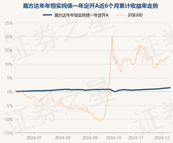 证券之星消息,12月11日,易方达年年恒实纯债一年定开A最新单位净值为1.0301元,累计净值为1.1583元,较前一交易日上涨0.01%。历史数据显示该基金近1个月上涨0.66%,近3个月上涨0.66%,近6个月上涨1.37%,近1年上涨4.5%。该基金近6个月的累计收益率走势如下图: